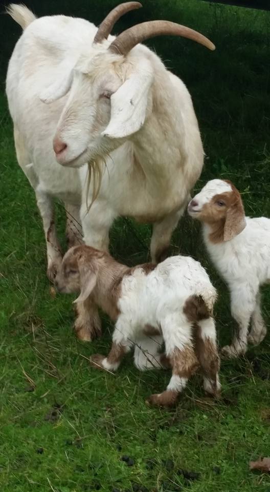 Boer Goats Boer are available in the Fall. See images below of our farm-raised, grass-fed goats. Please place your order now by calling Doc.